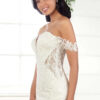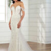 Envolviendo la figura con un detalle extraordinario, este impresionante vestido de novia Essense of Australia te dejará sin aliento. Los cordones gráficos gruesos presentan ligeros detalles de celosía en todas partes, con abalorios de marfil concentrados para una textura hermosa y brillante, que combina perfectamente con la silueta delgada inspirada en el encaje francés que se encuentra debajo. El deshuesado expuesto en la parte posterior del corpiño se compara con un estilo de corsé para un romance audaz, ya que los recortes transparentes alargados están cuidadosamente inclinados para atraer la cintura mientras se extienden sobre las caderas en una formación cónica, mostrando las curvas bajo una luz completamente nueva. Un escote corazón ajustado y tirantes drapeados fuera de los hombros se suman a la sensual decadencia del diseño, ya que el dobladillo tradicional con bordes festoneados completa la cola con un momento nupcial clásico que dejará a sus invitados asombrados.