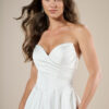 Nuestro vestido de novia Blanca combina líneas sencillas y limpias con un toque sofisticado y moderno otorgándote un toque de glamour, su espectacular blusa drapeada te permitirá que el vestido se adapte a tus curvas con un diseño limpio  dando paso a una espalda tipo corsé,