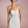 Las soñadoras se sentirán como si estuvieran en un verdadero cuento de hadas con nuestro vestido Samantha. Este vestido de novia princesa está compuesto por un corpiño con escote corazón totalmente cubierto de encaje y lentejuelas, una voluminosa falda de tul que favorecerá con gracia los movimientos de las novias en su gran día. y unas espectaculares mangas desontables.